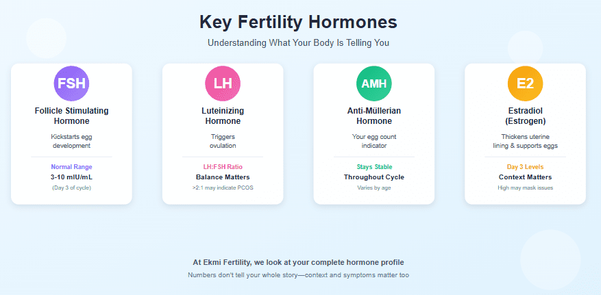 Receiving the results from your hormone test can be overwhelming. Numbers, ranges, abbreviations – that’s a lot to digest when you’re anxious about your fertility. At Ekmi Fertility, we think you shouldn’t require a medical degree to comprehend what’s going on in your body. Here’s a closer look at what those hormone levels actually mean, and why they are potentially important for your fertility journey.